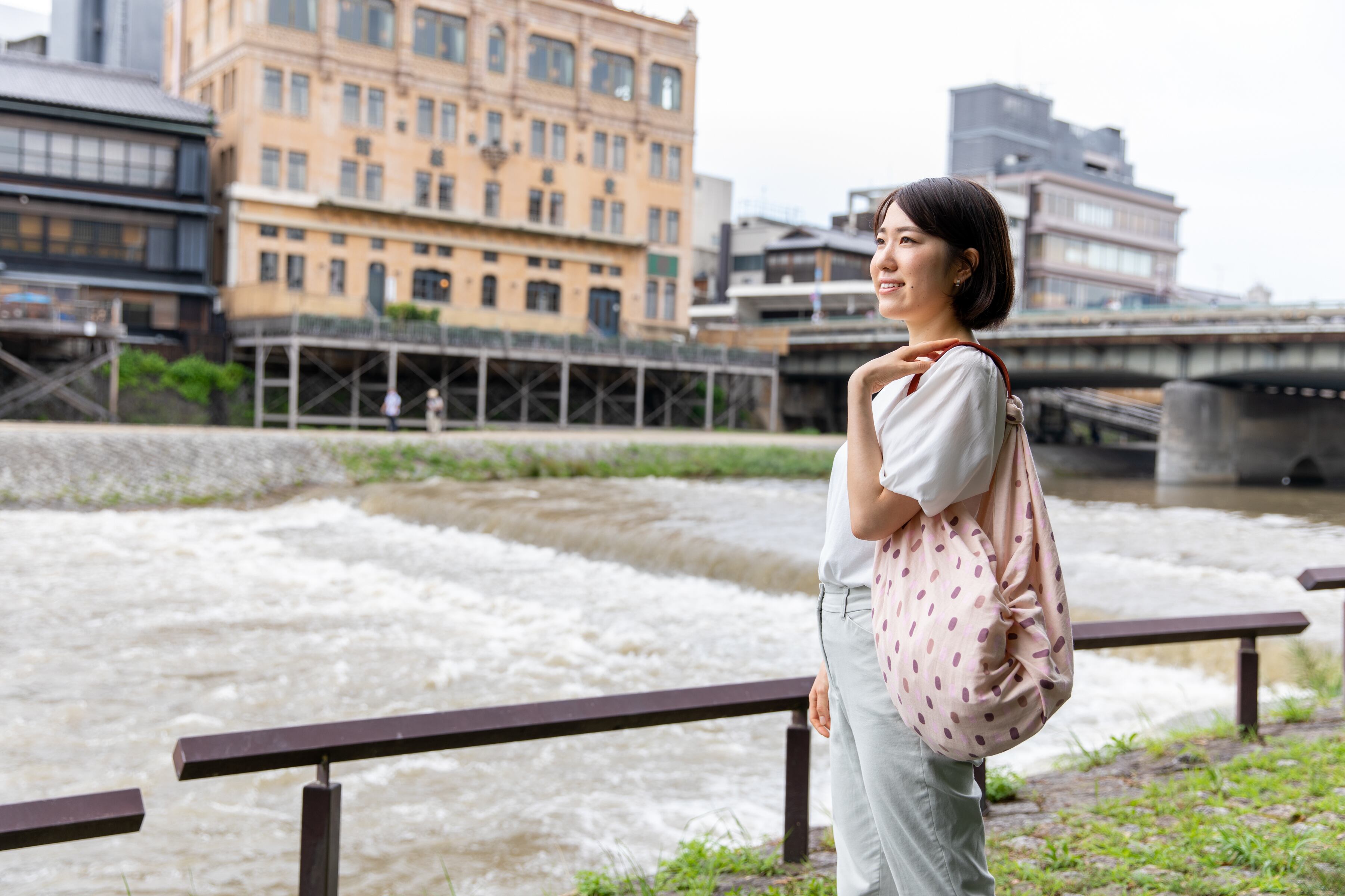 きょうくるみやお持ちの風呂敷にレザーハンドルをつけるとアクセントになり、お洒落なバッグに早変わりします。